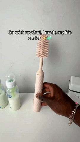 - Powered by a 5W high-performance motor, it effortlessly removes tough stains from bottle interiors – moms can say goodbye to scrubbing!