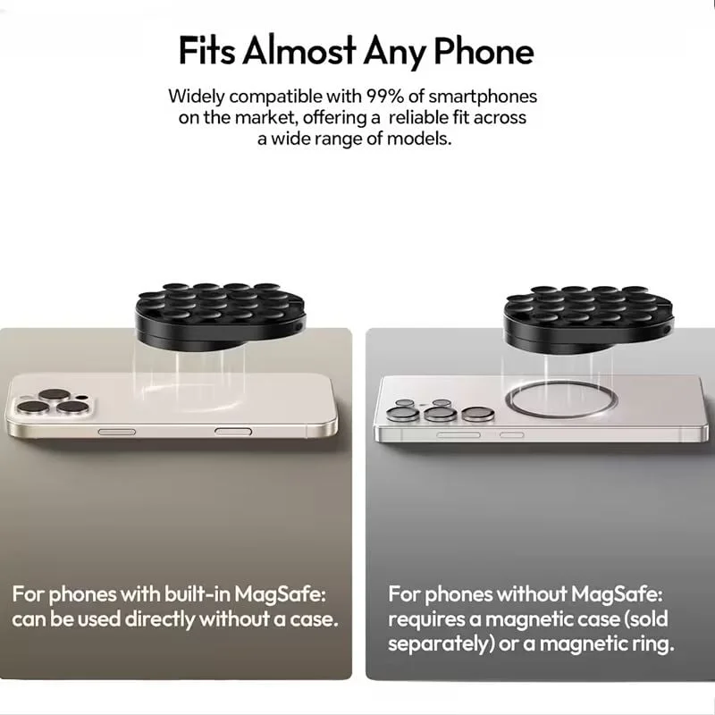 For Non-MagSafe Phones & Cases: Simply use a magnetic ring (not included) or place your phone in a magnetic case to enjoy full magnetic functionality.
