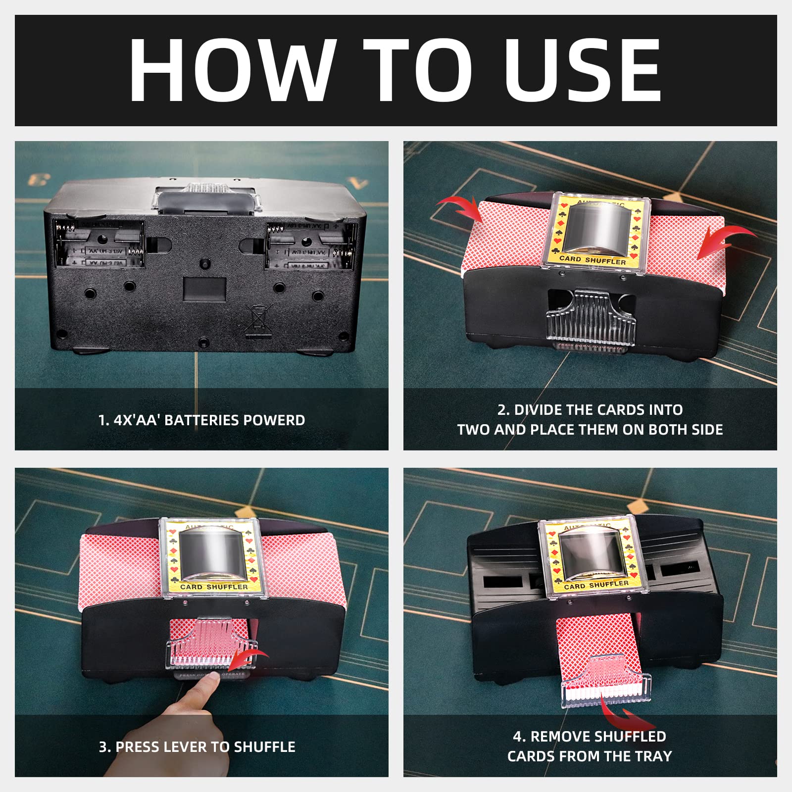 - 2-DECK SHUFFLER CAPACITY: It will easily automatically shuffle 1 to 2 decks of playing cards, so you can spend less time shuffling and more time playing gaming.