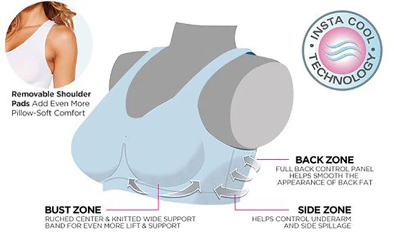 - Reduces side breast fat by centralizing & full coverage