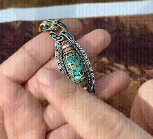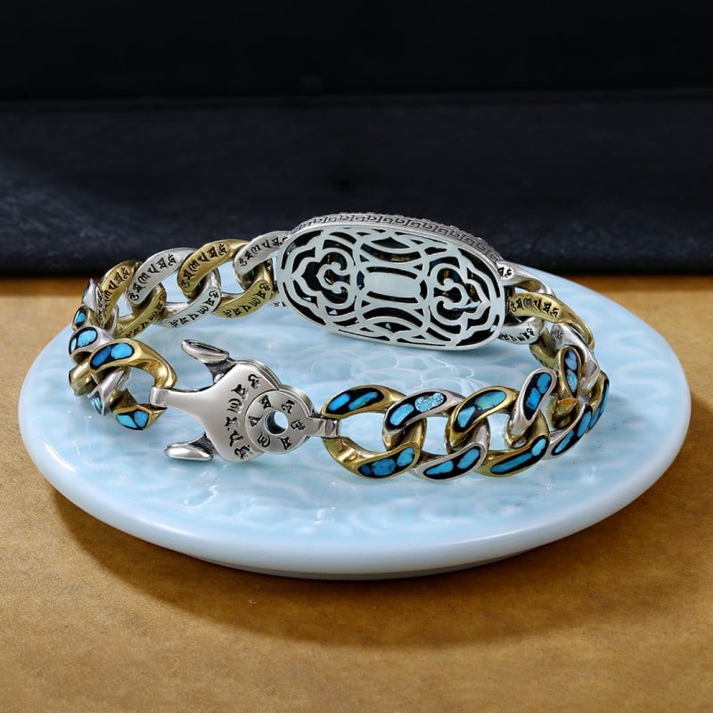 Turquoise Six-character Mantra Nine-eyed Dzi Bead Bracelet