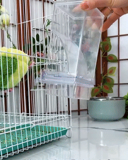 【Easy and Convenient Installation】: Parakeet feeder no complicated extra installation steps, you just need to fix it on the cage with the matching screws, you can give your love bird a perfect gift. The automatic bird feeder can be fixed outside or inside the cage, and the top cover can be opened directly to add food without removing it.
