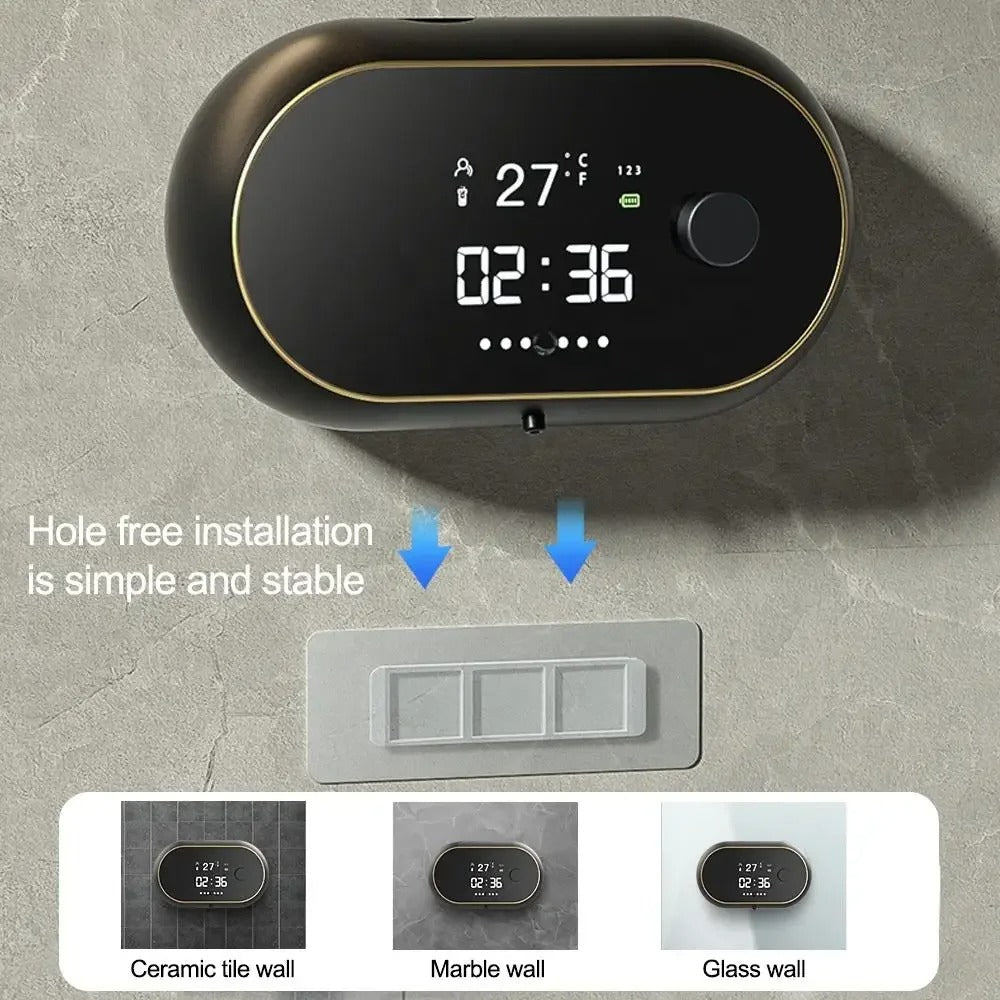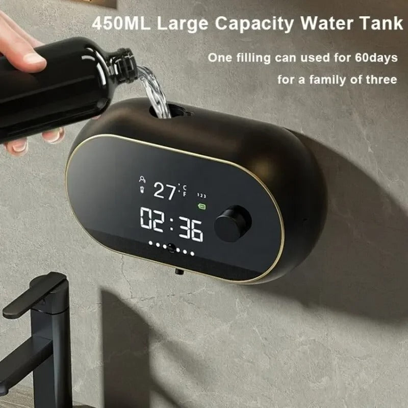 Not just a soap dispenser, this device also displays the time and temperature, adding a touch of modern sophistication to your bathroom. Stay informed about the room conditions while enjoying the convenience of automatic soap dispensing. It's a stylish addition that combines practicality with elegance.