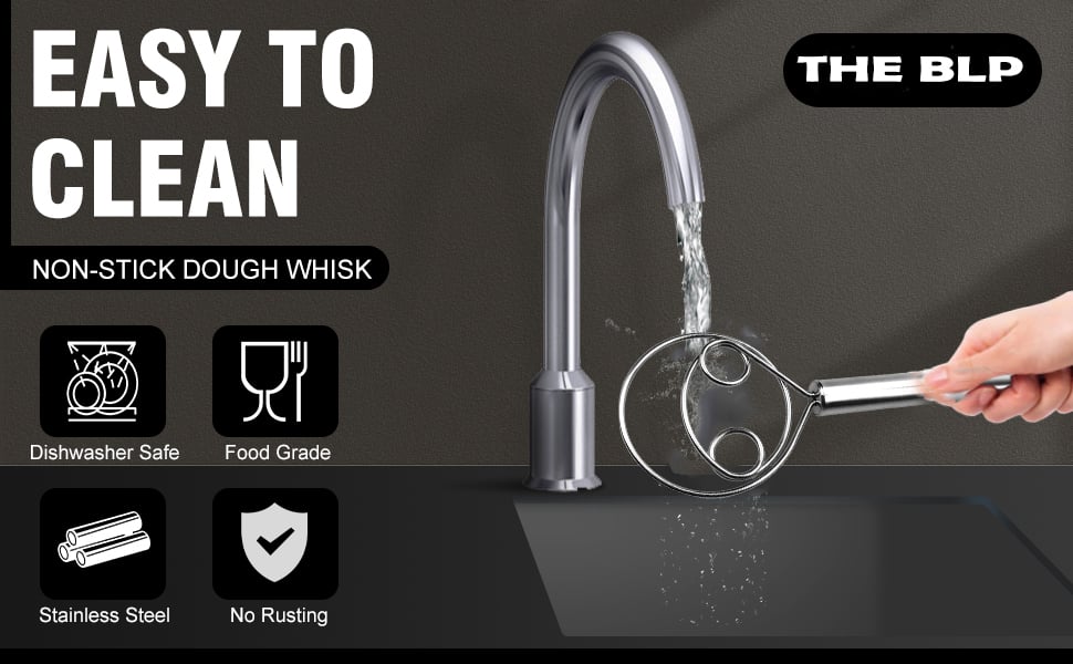 Easy to clean: Our Danish dough mixer is designed with smooth surface food-grade stainless steel, dough will not accumulate on the wire head, just wash the dough mixer with water after use to remove dough residue.