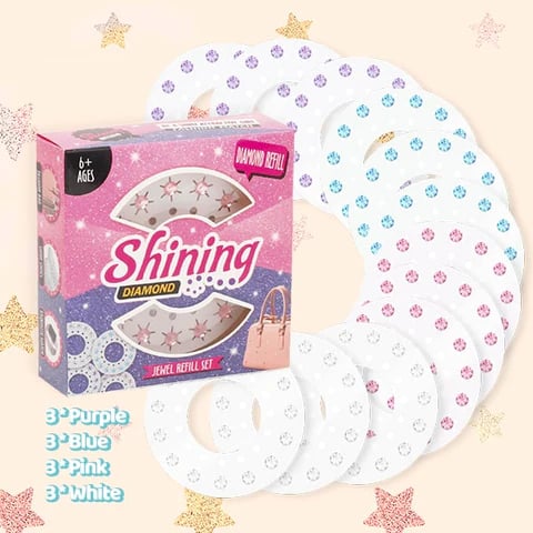 - 12 x Gem Refill Discs ( 3 purple, 3 blue, 3 pink, 3 white)
