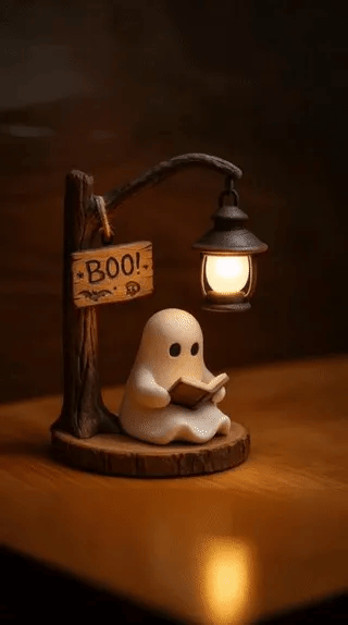 đŻïž Ideal for desks, mantels, or as a cute Halloween gift. The lantern emits a soft glow, and the ghostly reader adds whimsy—brings spooky - sweet vibes to any room.
