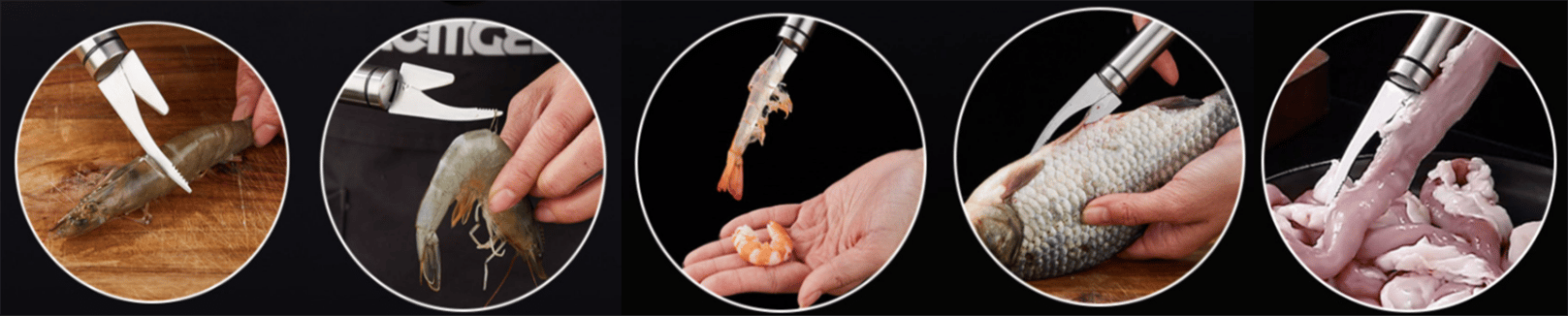 One knife helps you peel complete shrimp and clean fish.