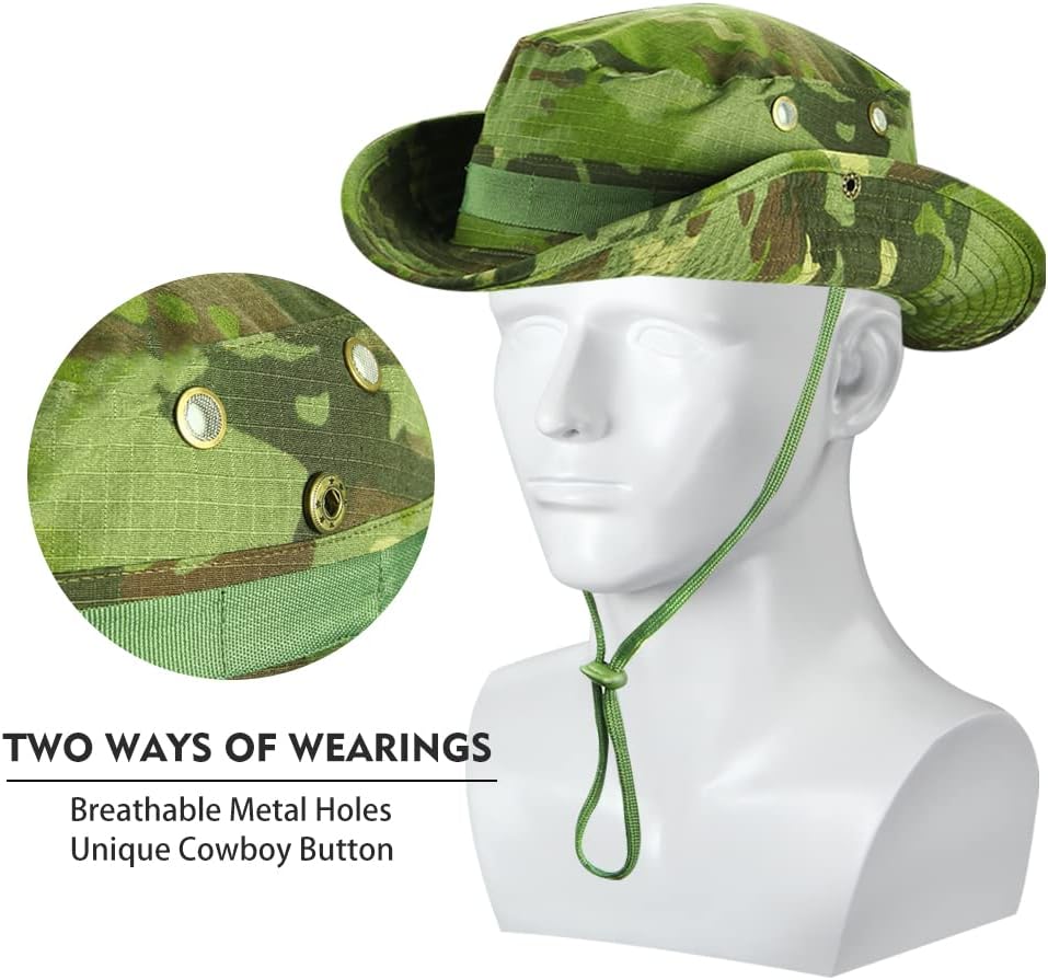 This hat offers two styling options. Pairing the brim button with the side button creates a particularly stylish look.