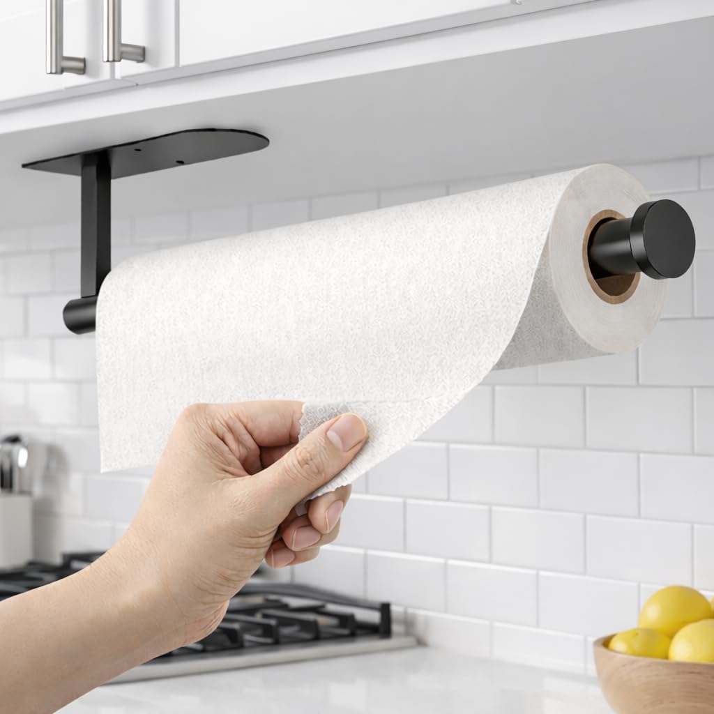 The matte black metal rod pairs seamlessly with wood, stainless steel, or modern kitchen decor—plus, it’s tough enough to hold extra-large paper towel rolls without wobbling.