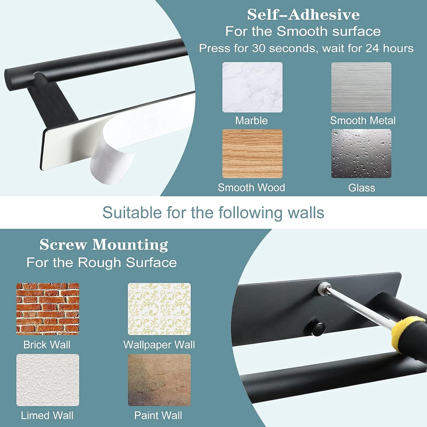 Pick your fit: stick it on with heavy-duty adhesive (renters, this one’s for you!) or secure with screws for long-term sturdiness. Either way, you’ll have it installed in 2 minutes flat.