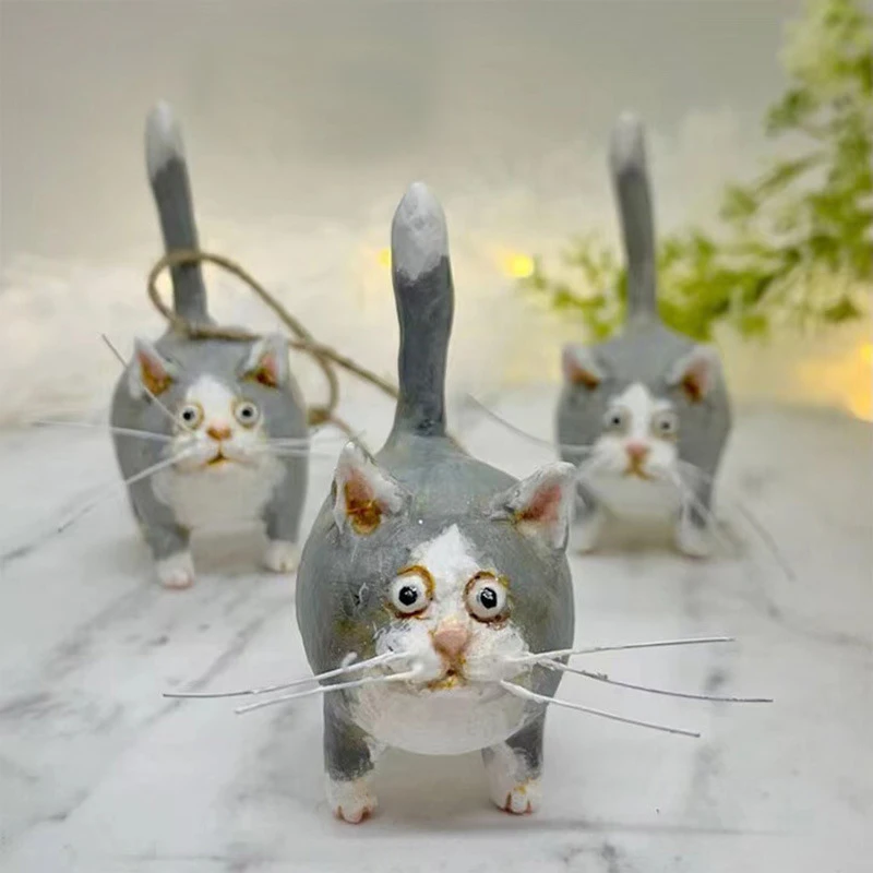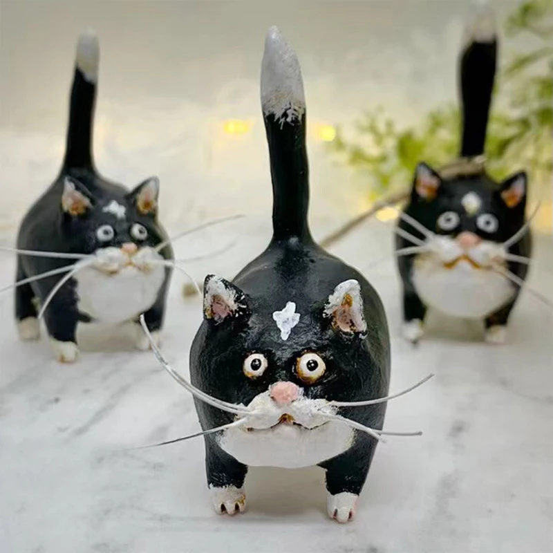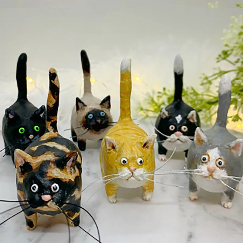 whimsical miniature kitty figurine. Hand sculpted and hand painted. Each one is unique and cute!
