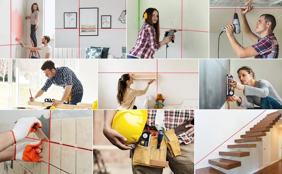 【EASY TO OPERATE】Laser leveler tool herramientasis designed with one slider selection button in the front to make it easy for everyone to use.It control the vertical laser line, horizontal laser line and cross laser line mode switching,suitable for different usage modes,and accuracy is more accurate and stable. Such as,laser level for picture hanging.