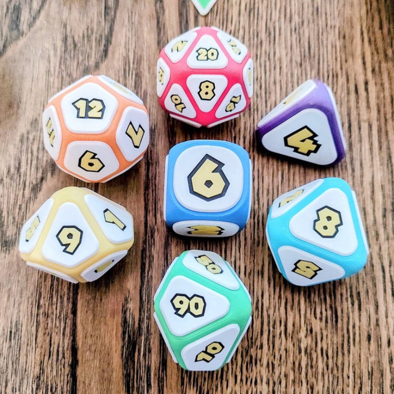 Enjoy a complete set of 7 uniquely designed dice, including D4, D6, D8, D10, D10 percentile, D12, and D20. Embrace the charm of the universe with vibrant, colorful dice.