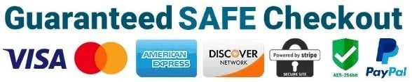 The Checkout Process is Guaranteed to be 100% Safe and Secure with Visa, Mastercard, AMex, Discover, Apple Pay or PayPal.