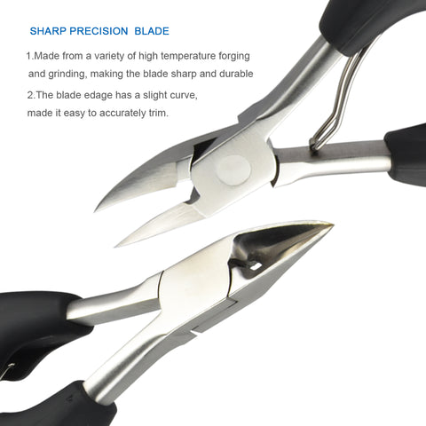 - UNIQUE DESIGN: This nail nipper is designed to cut thickness, Ingrown toenails, roll nails and brittle foot nails, especially caused by psoriasis, nail fungus, injury, and aging. An internal bending nail cutter cuts into the nail and is comfortable to cut.