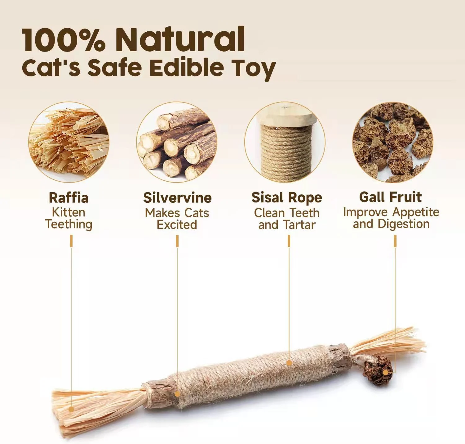 Natural Silvervine Stick contains dietary fiber which help cats eliminate hairballs, improve digestion and dental health, by chewing the silvervine, your fur babies dental plaque and tartar, fetid breath can effectively be eliminated and oral health can be improved.