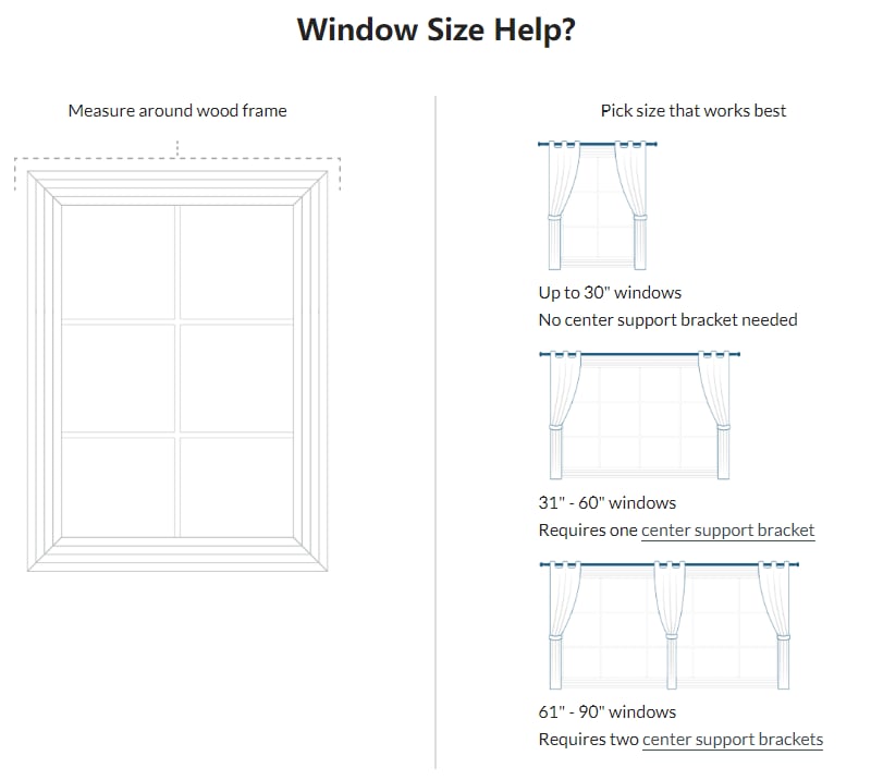 The Hang curtain rod holders work with any wooden window frame that's at least 1/2 inch wide from the wall, will fit any curtain rod up to 1 inch in diameter, and there's even an option for a center support bracket for extra long windows and curtains.