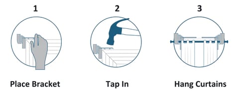 The unique easy hanging curtain rod holders require just a hammer or mallet as they require no drilling or nails, are easily removed with no damage left afterward, and they come in single or double rod holders depending on your preference.