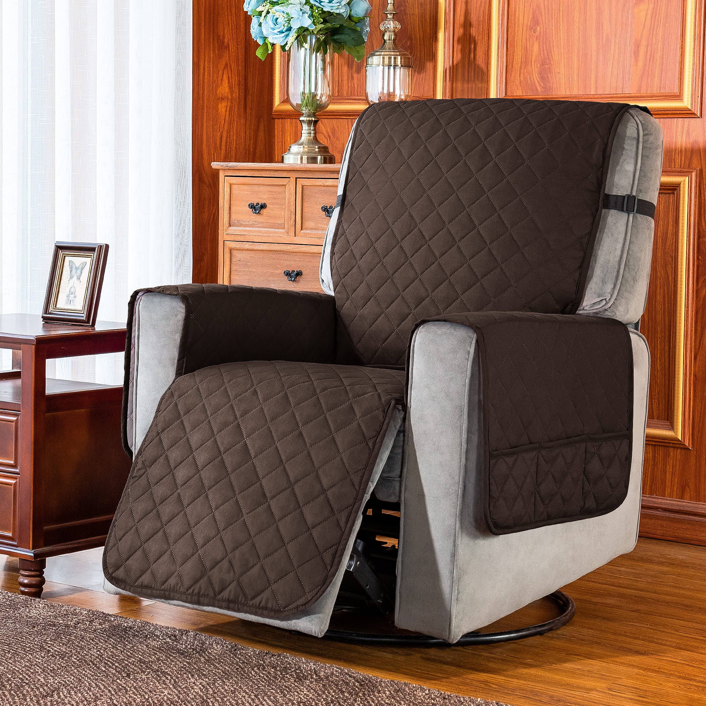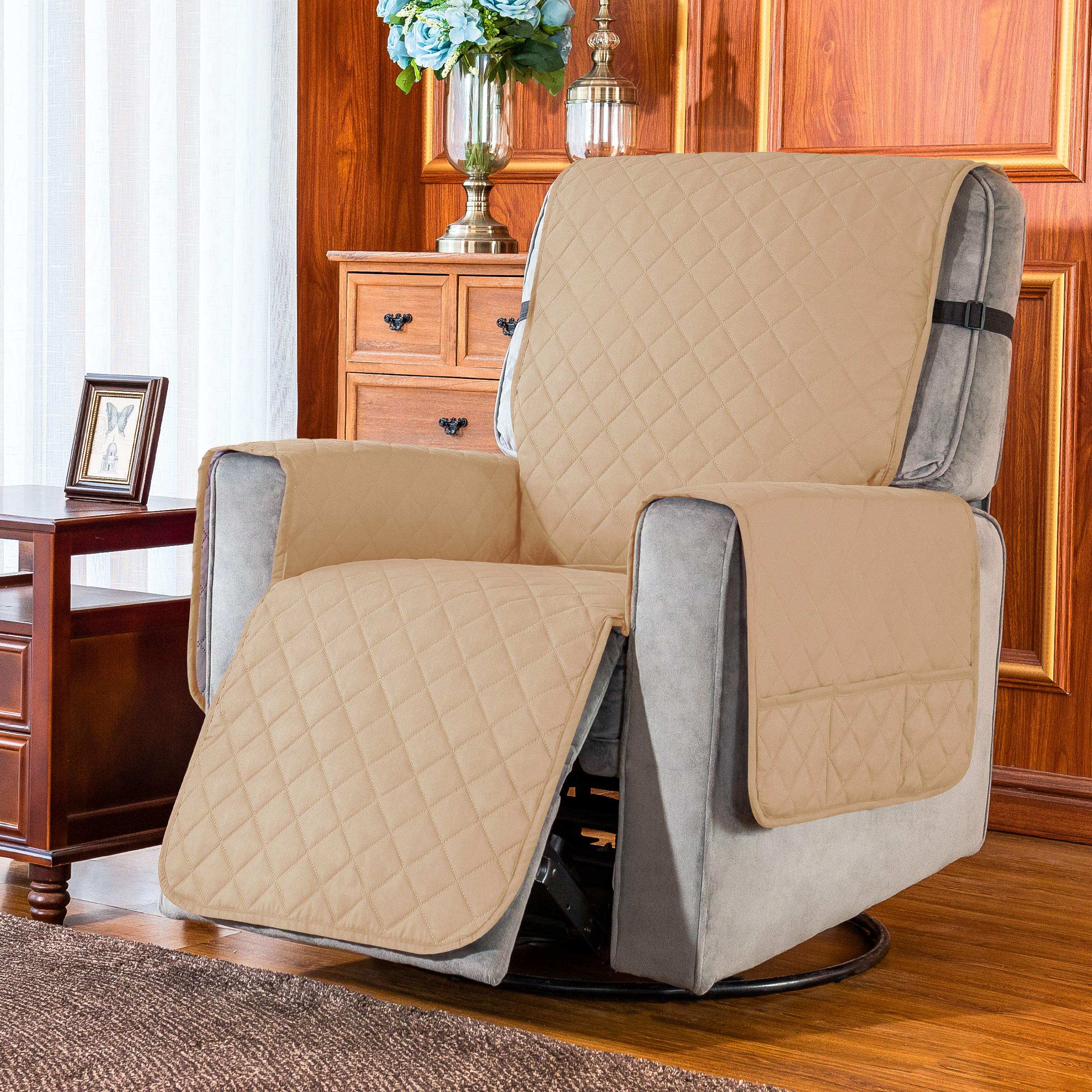 There is utility pocket on right side of our reclnier chair cover, you can put remote , mobile phone, magazines and other items in it. Making your chair more tidy and more convenient to store.