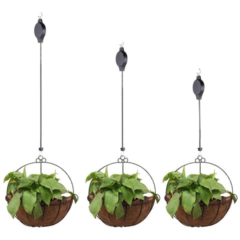 Retractable Pully Plant Hanger: There is a durable hanging strap inside, the maximum extension length could be up to 35.43in(90cm) You can raise or lower the plant very quickly and lock any position you want with this pull-down hanger. It makes watering and feeding much more easy and convenient, no need to climb ladders anymore.