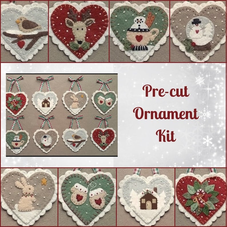 1 * Pre-Cut Wool Blend Felt Holiday Hearts Ornament Kit