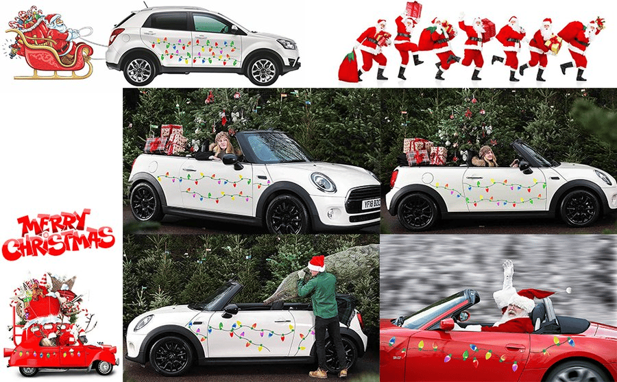Made of reflective film and magnetic back. These reflective Christmas bulb magnets seem to light up when the headlights are illuminated. They shine like real light bulbs in the sun or light. This is a fun way to dress up a car for the holidays.