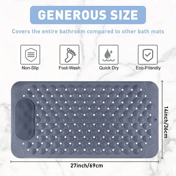 🎈【Oversized Coverage】Our extra large mat is 27 inch x 14 inch, longer than standard bath shower mats, the oversized dimensions offer ample coverage, making baths comfortable and safe.