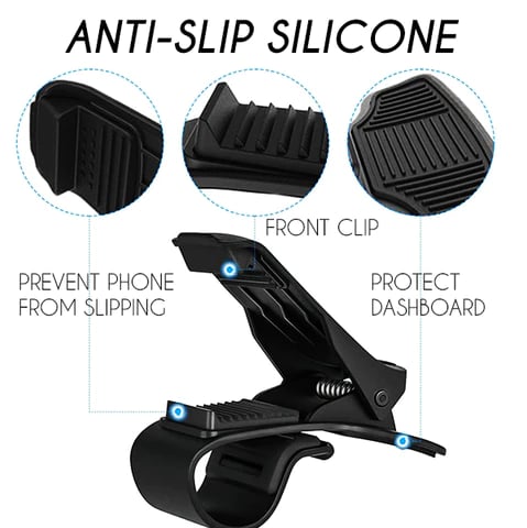 Universal Car Phone Clip Holder holds smartphones right above the dashboard by a simple clip. It ensures clear front driving view without obscuring any viewpoint for 100% safe driving.Enjoy driving, using GPS, listening to calls / music without looking away from front viewpoints. You can also adjust angle, placing it either landscape/portrait with anti-slip feature for the perfect and stable viewing position.